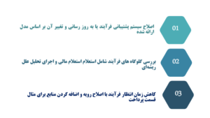 راهکارهای بهبود، پیشنهادهایی برای اصلاح و ارتقای عملکرد فرآیند تدارکات هستند. این راهکارها با هدف افزایش کارایی، کاهش هزینهها، ریسکها و بهبود کیفیت خدمات ارائه میشوند. راهکارهای کلی برای ایجاد بهبود در عملکرد فرایند با استفاده از فرایندکاوی در تصویر زیر نشان داده شده است.